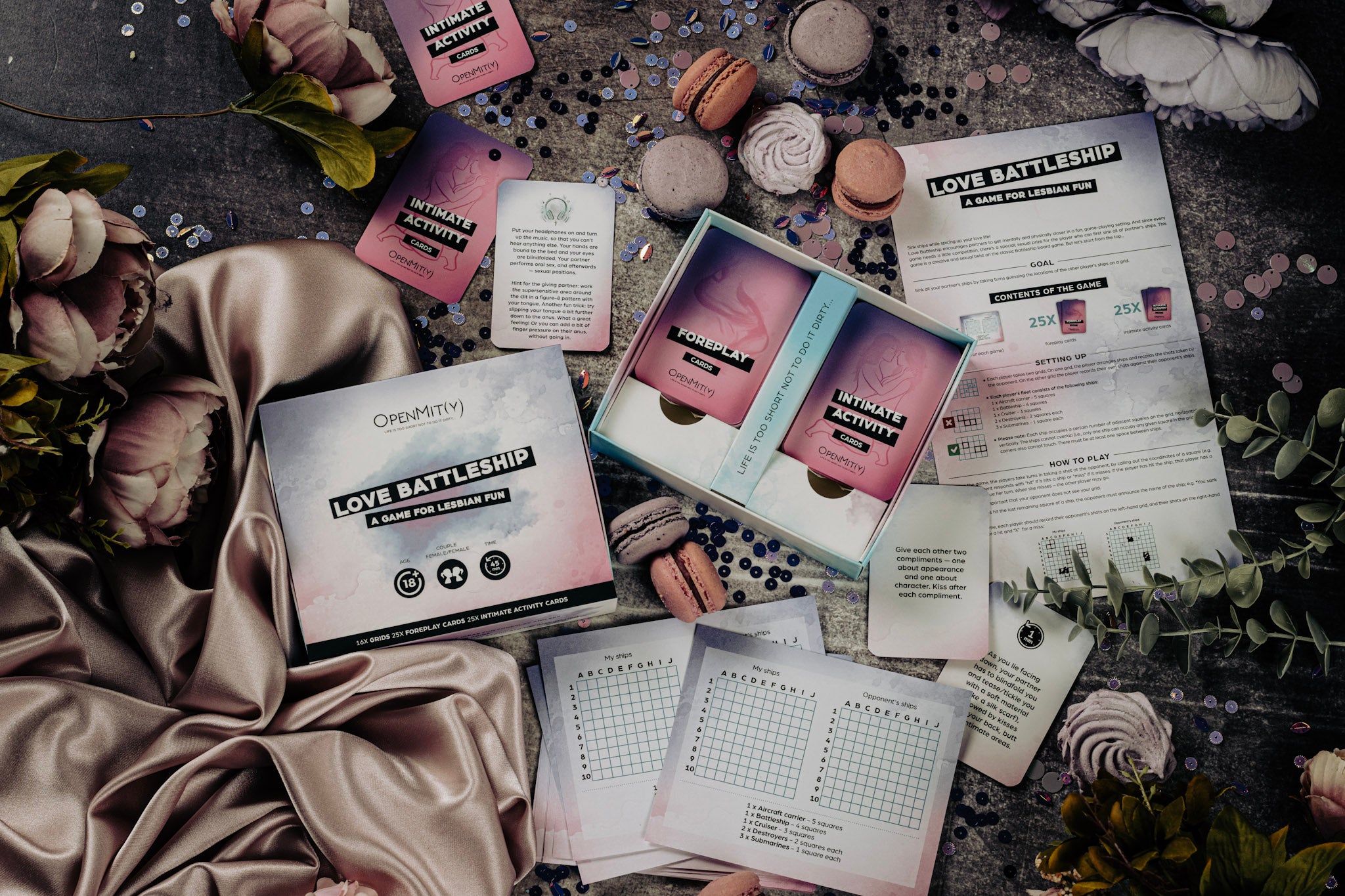 In the Lesbian Love Battleship game, players use classic battleship game rules to guess the locations of their partner's "ships" on a game grid.